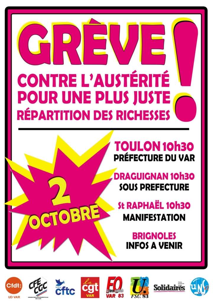 Le monde du travail a assez souffert et c’est pourquoi l’ensemble des organisations syndicales appelle à amplifier la mobilisation lors d’une nouvelle journée d’action et de grève interprofessionnelle le jeudi 2 octobre prochain pour exiger :